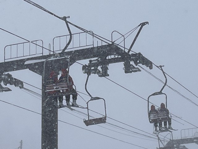 横手山スキー場の天候は事前に理科の授業で確認していましたが、今日はホワイトアウトと言えるほどの雪と視界の悪さで、厳しい自然環境を実感する一日となりました。気温はマイナス13度前後を示しており、厳しい寒さの中での実習となりました。