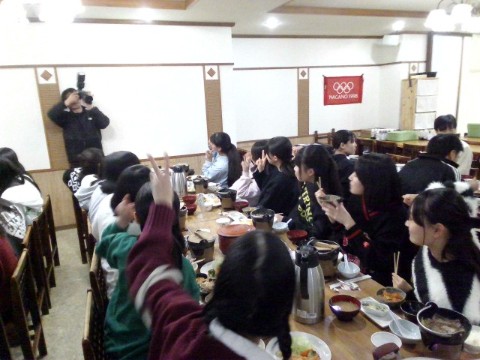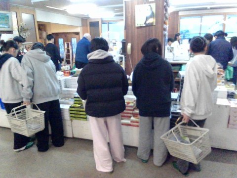宿舎に戻ると、入浴とお土産の購入の時間となりました。硯川温泉は硫黄泉で、「2~3日は体から硫黄のにおいがする」と聞きました。売店には多くのお土産が並び、限られた予算と時間の中で、計算をしながら品物を選ぶ姿が見られました。