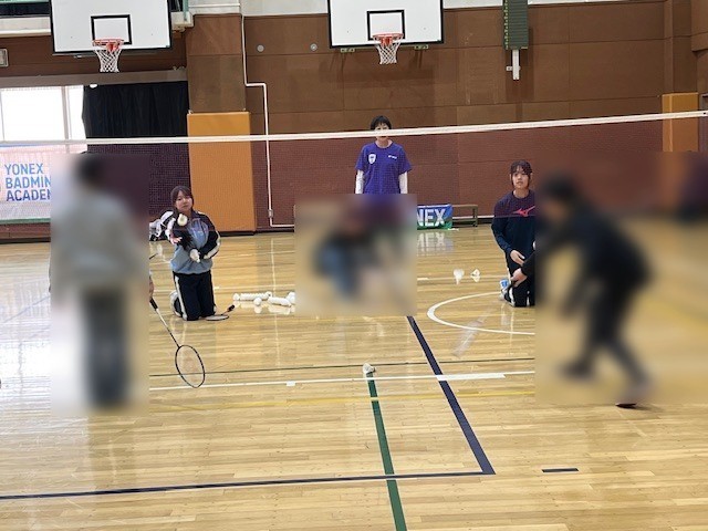 練習中は、本校バドミントン部の7・8年生が指導補助として参加し、シャトルを投げたり、相手をして打ち返したりしながら、小学生をサポートしました。