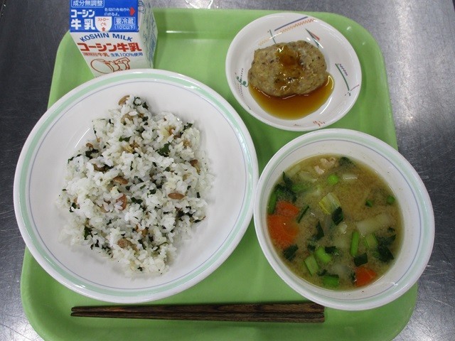 わかめの香りがふんわりと広がるご飯に、いり大豆の食感がアクセントになった一品。ほどよい味付けで噛み応えがあり、噛むほどに大豆の香ばしさが感じられました。