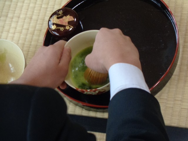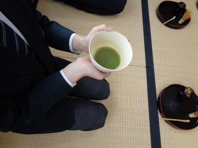 今回は、本物の抹茶を実際に点てて味わう体験を行いました。作法や道具の扱いには慣れが必要ですが、手本をよく見ながら一つ一つの手順を確認し、丁寧にお茶を点てることができました。
