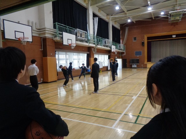 生徒会役員の公約の一つである「昼休みの体育館解放」が、お試し期間として始まりました。2月6日は9年生、9日は7年生、10日は8年生と、学年ごとに曜日を分けて実施しています。