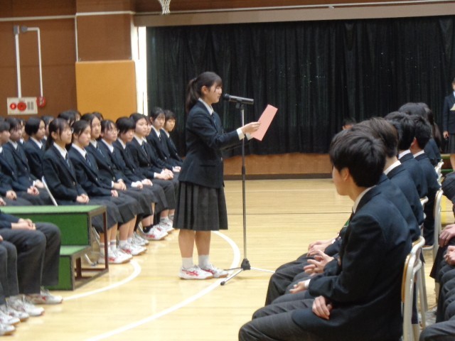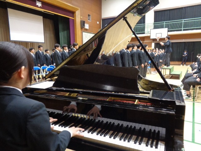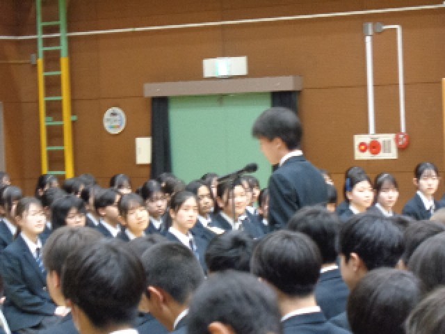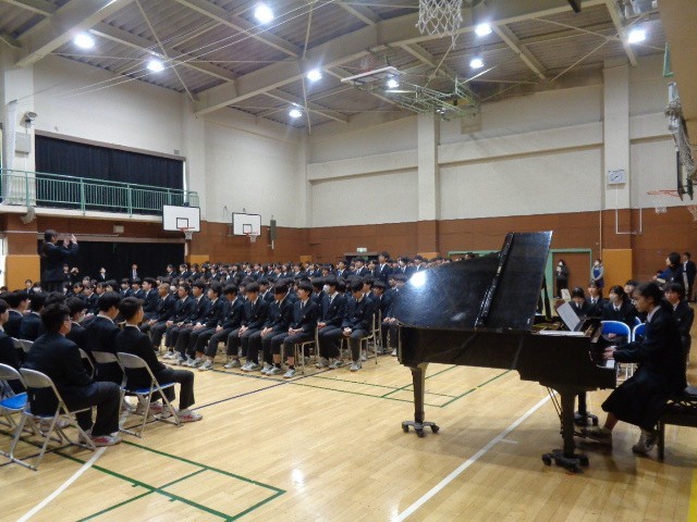 それに応えるように、9年生代表から後輩への言葉が送られ、合唱曲「僕らはいきものだから」が披露されました。これからの志五中を託す後輩へのメッセージは、7・8年生の心に深く刻まれたことと思います。3年間の思いが込められた歌声が体育館いっぱいに響き、心に残る合唱となりました。