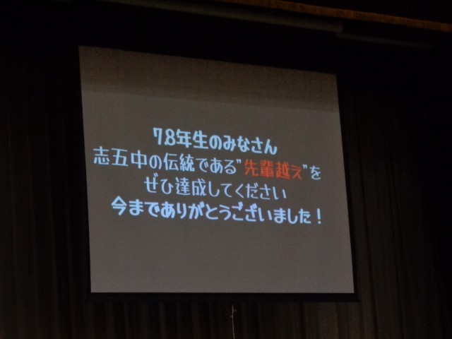 また、9年生によるスライドショーも上映されました。工夫を凝らした映像に会場からは温かな笑顔や拍手が起こり、3年間の成長を感じるひとときとなりました。志五中のよさを改めて実感できる、心温まる時間となりました。