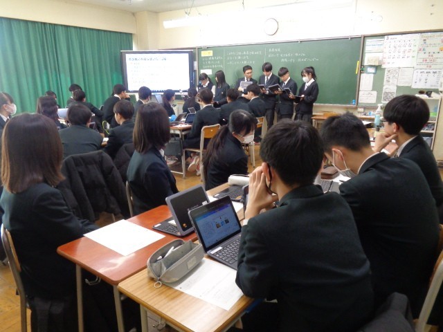 9年生は、受験と並行して総合的な学習の時間に取り組んできた「防災学習」の成果を発表するクラス発表会を行いました。