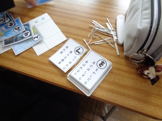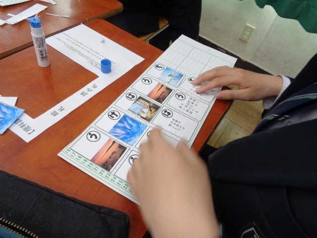 3学期は気象の分野を学習しました。そのまとめとして、気象をテーマにしたカルタづくりに取り組んでいます。気象用語や季節、自然に関連付けた言葉を用いて読み札を考え、班で相談しながら作成しています。