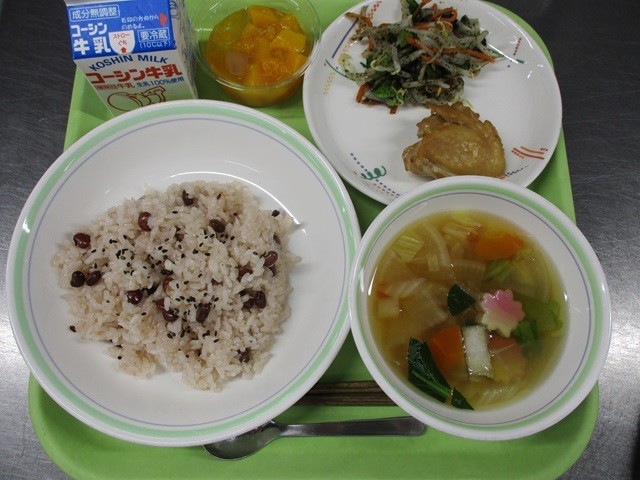 ほどよい塩味と黒ごまの香ばしさがご飯によく合い、卒業と進級をお祝いする赤飯でした。