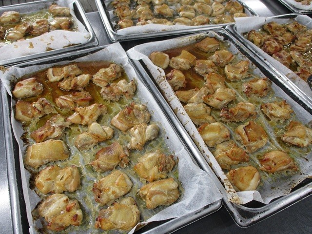 生姜やにんにく、しょうゆで味付けした鶏肉の照り焼き。やわらかくジューシーに仕上がっていました。