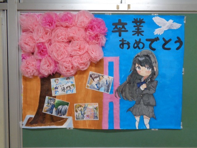 卒業式終了後、午後の時間帯に第二部の卒業式を行いました。普段の学校生活の中で、教室での授業への参加が難しい時期もあった生徒の皆さん一人一人に向けて、改めて卒業を祝う時間を設けたものです。