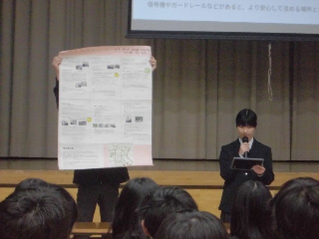 南部エリアを担当した1組からは、信号機の設置やノンステップ化、飲食店の充実などの改善案が挙げられ、「住みやすさとは、どの年代の人も安心・安全に、便利に暮らせること」とまとめられました。