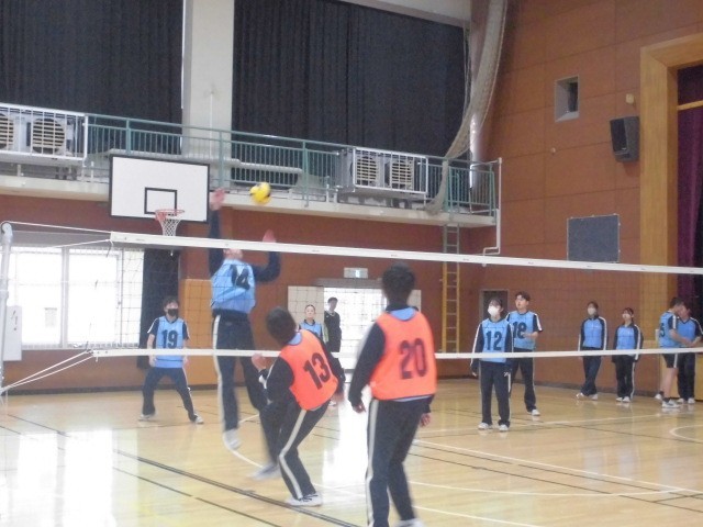 7年生 球技大会 公開日 2026/03/23 更新日 2026/03/23 できごと 7年生では、2・3校時に球技大会を行いました。早朝から体育係の生徒が登校し、準備を進めてくれました。 種目はバレーボールとハンドボールで、各試合は8分間。クラスごとに声を掛け合いながら試合に臨みました。 今回の球技大会は、親睦を深めるとともに、生徒が主体となって大会を運営する経験を積む機会にもなりました。競技は大いに盛り上がり、会場には大きな応援の声が響いていました。 +3 7年生