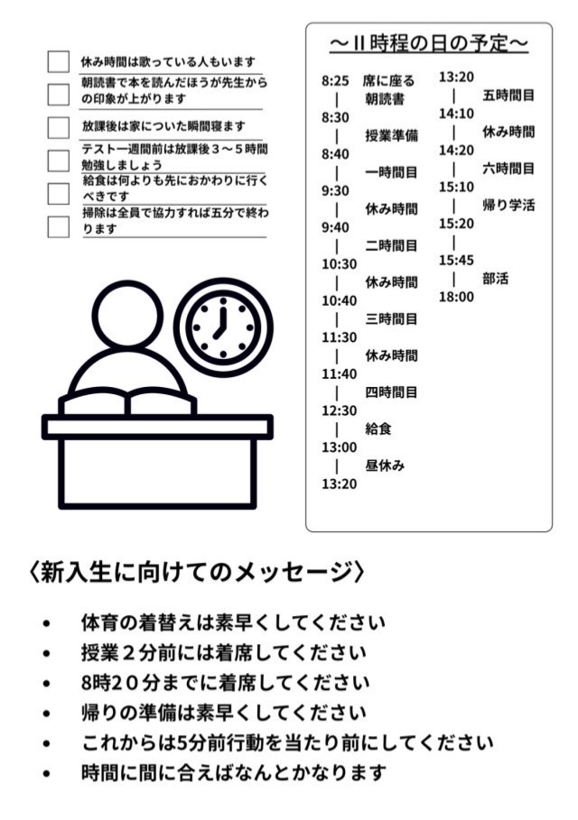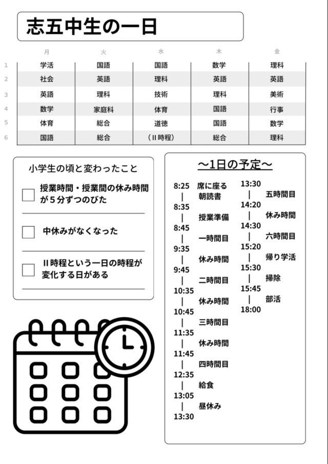 新入生の皆さんへ「志五中生の一日」