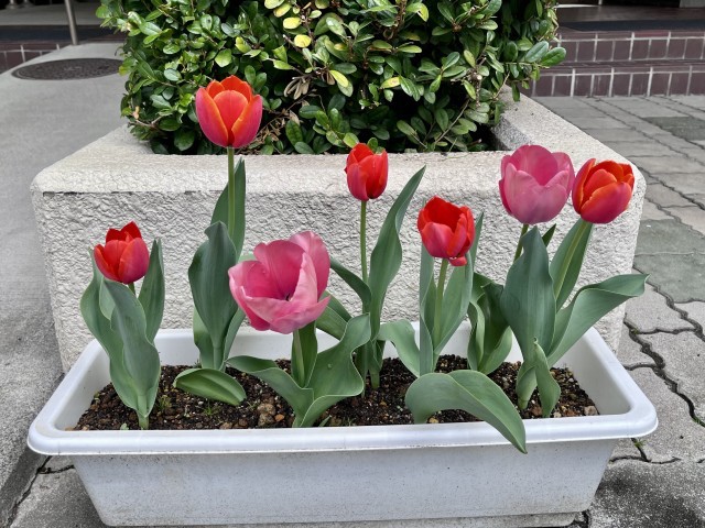 (3枚めの写真は、新入生の入学を祝うために生徒と地域の方が植えたチューリップです。)