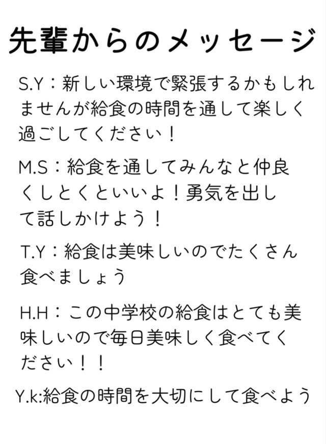 新入生の皆さんへ「先輩からのメッセージ」