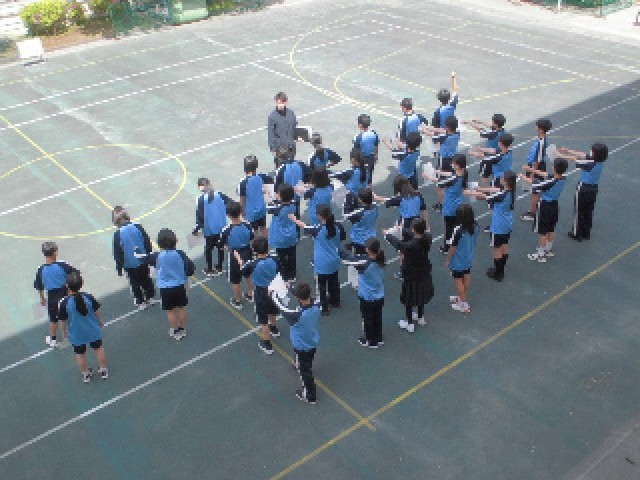保健体育では、授業の受け方の確認とともに、体つくり運動や体力を高める運動に取り組み、体を動かすことの楽しさを実感していました。校庭からは「イチ」「ニ」と筋トレの数を数える声が聞こえてきました。