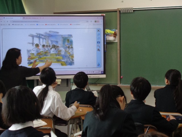 音楽では、「浜辺の歌」を通して拍子を意識して歌うとともに、アルトリコーダーについて7年生の学習内容を再確認しました。6/8拍子の指揮の仕方にも取り組みました。