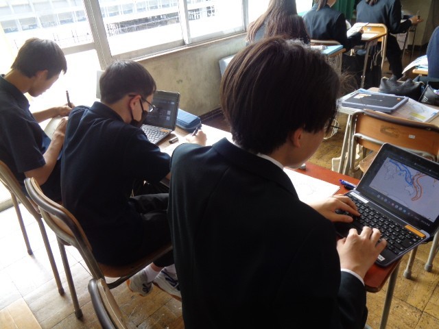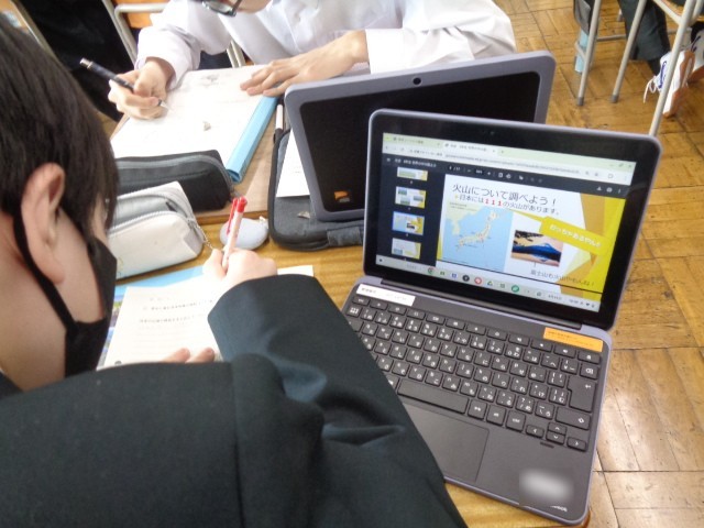社会では、「世界と日本の地形」の単元で、造山帯と地形のしくみについて理解を深めました。新しい仲間と班で協力する場面も見られました。