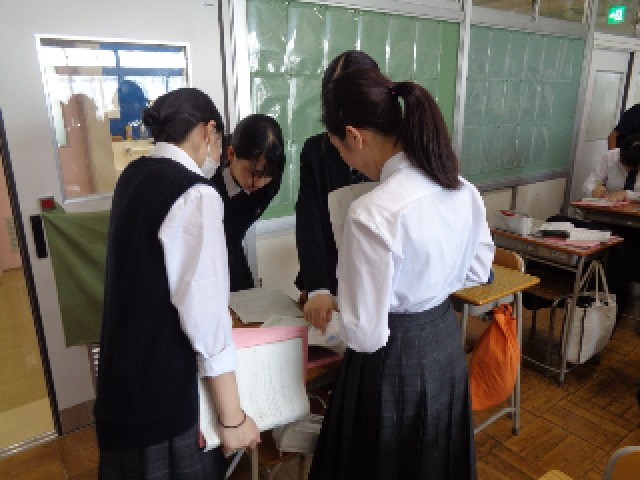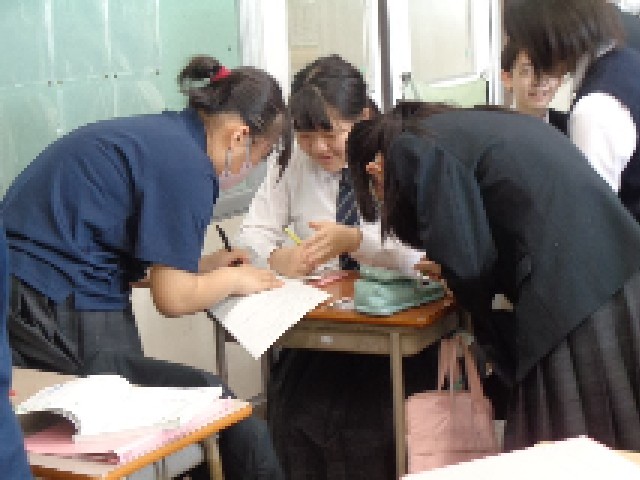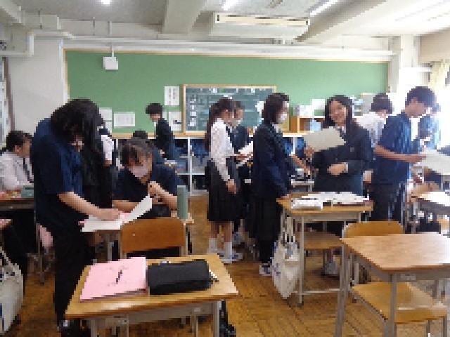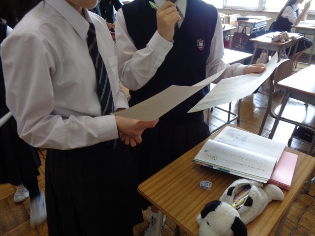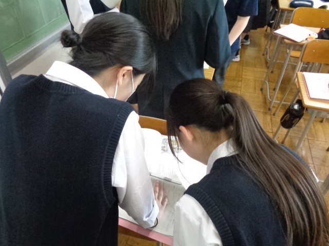 本校では「志五中授業スタンダード」として、根拠を基に自分の考えを80字2文で説明する指導を全教員で共通して行っています。この授業でも同様の形で学習を進めました。また、個人で考えた後にグループで意見交換や議論を行う流れは、「板橋区授業スタンダード」に基づくものです。写真からは、多くの友達と関わりながら、意見交換や教え合いを行う様子がうかがえます。