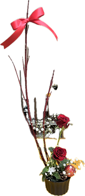 茶華道部12月の作品(1) 公開日 2024/12/19 更新日 2024/12/19 できごと 茶華道部は毎月の作品を校内に展示しています。今月の花は、かすみ草、サンゴみずき、ホワイトスター、バラです。 今回は一人ひとりの作品を背景抜きでアップロードしてみました。