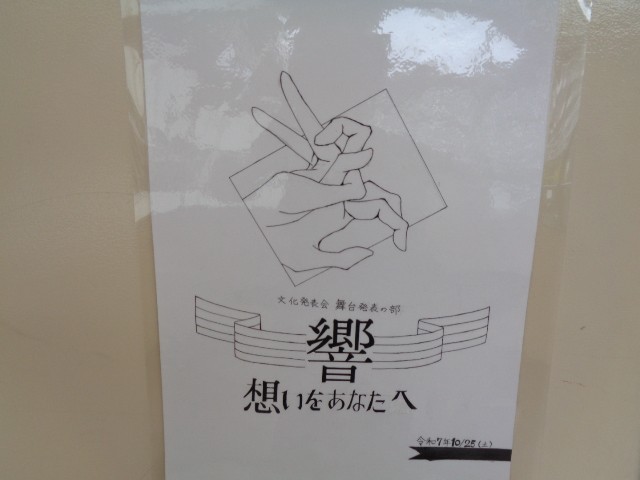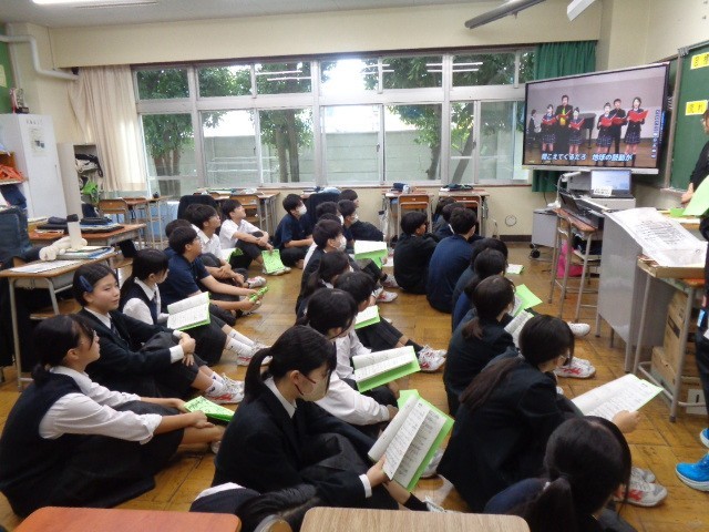歌詞に込めた想いを歌声に乗せて届けるために、話し合いや練習を繰り返す生徒たちの姿が印象的です。写真は、今日の4校時の練習の様子です。校内には、美術部が描いたポスターも掲示され、発表会への期待が高まっています。