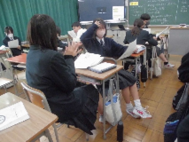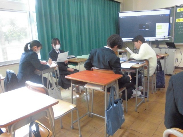 生徒たちは大勢の参観者に見守られながらも、いつもどおり、明るく、節度をもって、意欲的に意見を出し合っており、参観された先生方からも高い評価をいただきました。