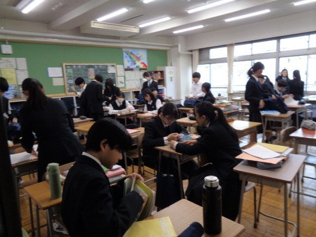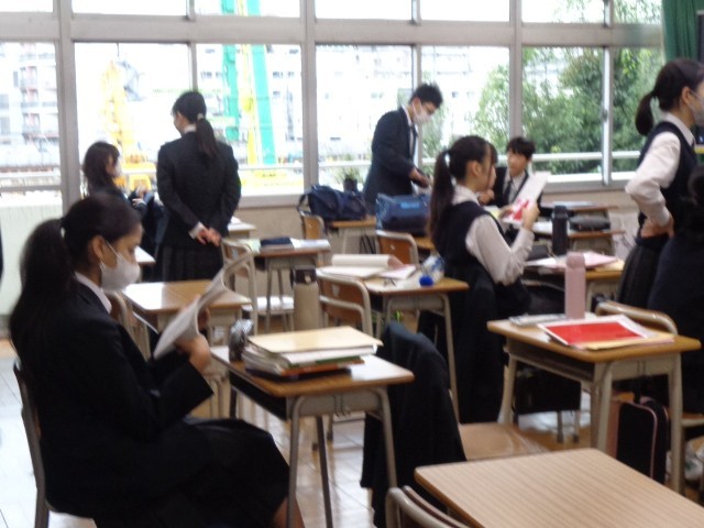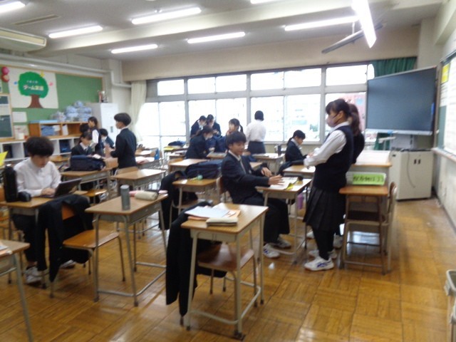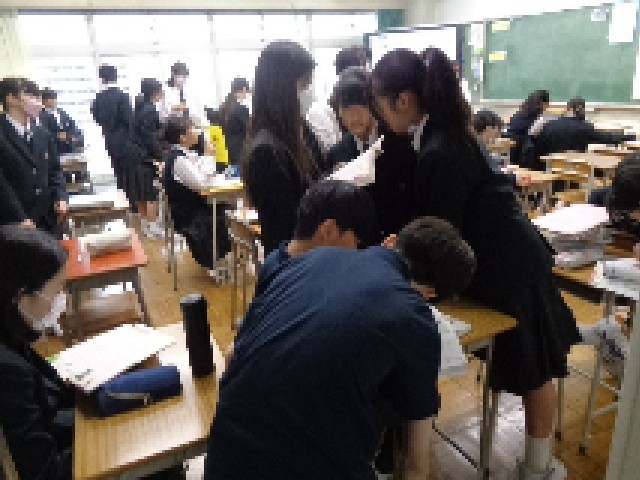 生徒たちは大勢の参観者に見守られながらも、いつもどおり、明るく、節度をもって、意欲的に意見を出し合っており、参観された先生方からも高い評価をいただきました。