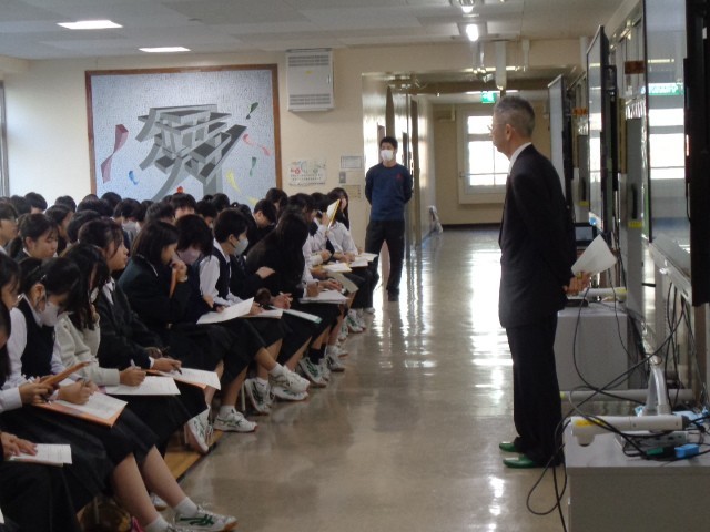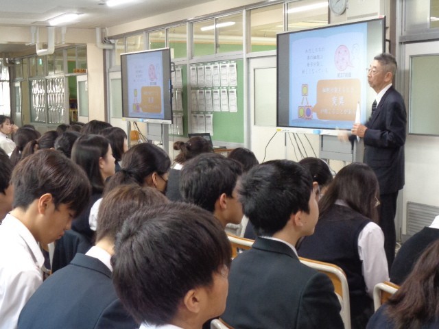 今年度も前校長先生を講師に迎え、がんの基礎知識や生活習慣の大切さ、早期発見の重要性について学びました。また、「夢に向かって全力で!」と励ましの言葉もいただき、8年生にとって心に残る時間になりました。