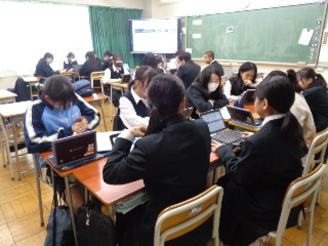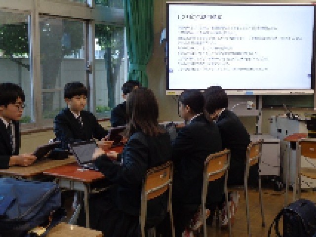 修学旅行での学びを振り返る「検証学習」に取り組んでいます。今日の5時間目は、2組が発表用のスライドづくりを進めました。