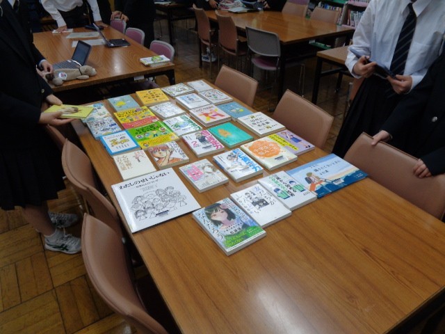 7年生の学級委員会では、担当教員の到着前に、学年で昼休みに行うアイスブレイク用のクイズ作りを行っていました。図書委員会では、学級文庫にいじめに関する本を追加するため、本の選定を進めていました。