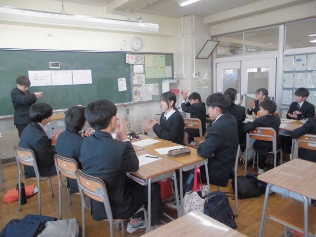 授業のはじめに、生徒たちは「将来、社会の中で自分の役割を果たし、自分らしく生きていくために、どんな力が必要か」を考えました。ホワイトボードには「勉強」「礼儀」「知識」「強いメンタル」「コミュ力」「行動力」「優しさ」「ポジティブ思考」「判断力」など、さまざまな言葉が書き出されました。