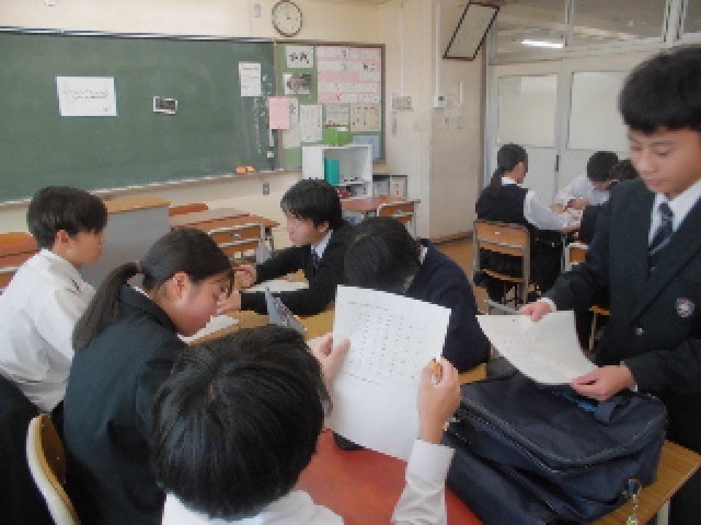 今日は2学期末考査の2日目でした。午前中は数学・理科・保健体育の3教科、給食後には美術の試験が行われました。どのクラスでも、生徒たちは集中して問題に取り組んでいました。最後の教科が終わると、教室の方から解放感から出た大きな声が聞こえてきました。