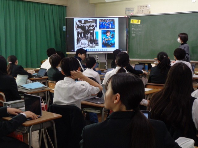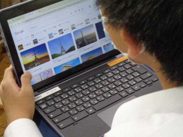 修学旅行での学びを振り返る「検証学習」に取り組んでいます。今日の5時間目は、2組が発表用のスライドづくりを進めました。