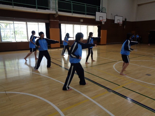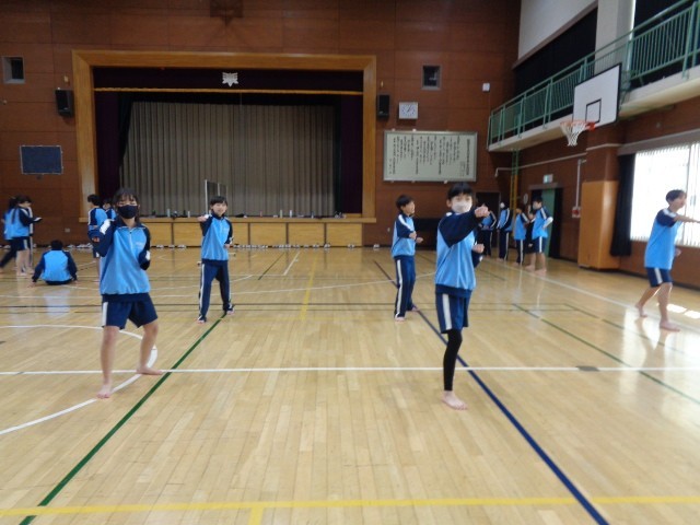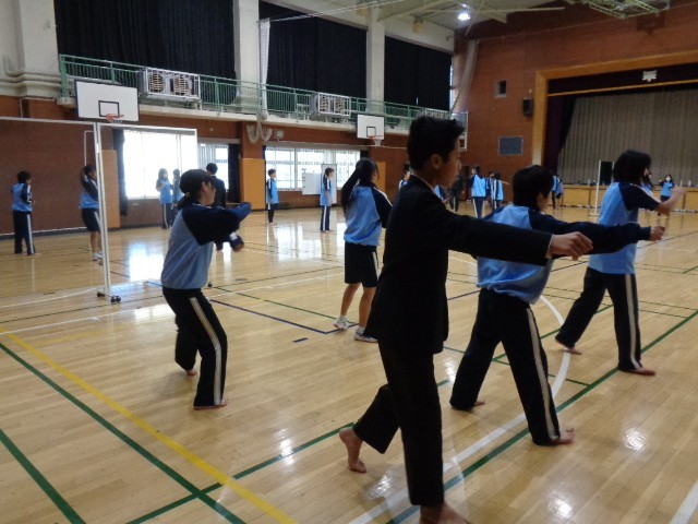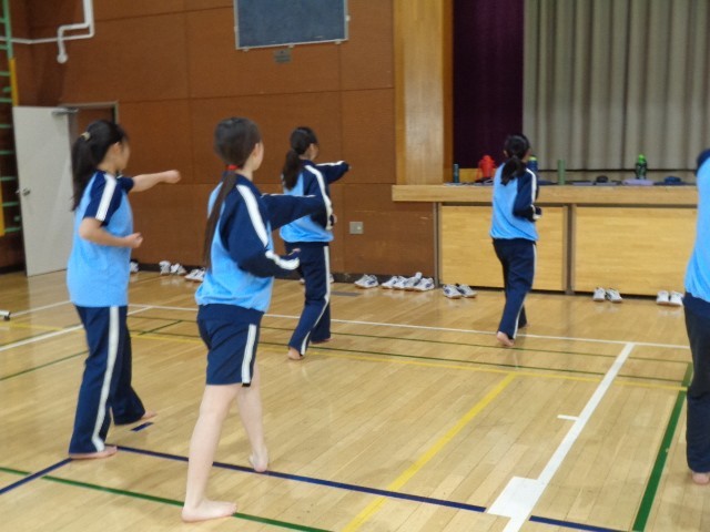 12月から始まった空手道の授業も、今回で4回目となりました。今日は、班ごとに課題を見付けながら「基本形Ⅰ」に取り組むことを目標に、練習を行いました。