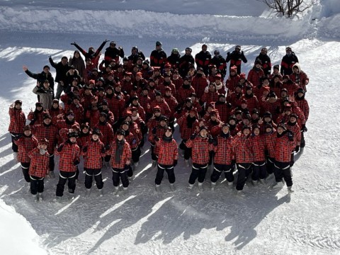 朝食後は、寝具の片付けや荷造りなど慌ただしく準備を進め、前日と同様にスキー実習へ向かいました。この日は天候にも恵まれ、集合写真を撮り直すことができました。最終日の講習時間は2時間。朝の気温はマイナス9.5度と、これまでに比べて過ごしやすいコンディションでした。