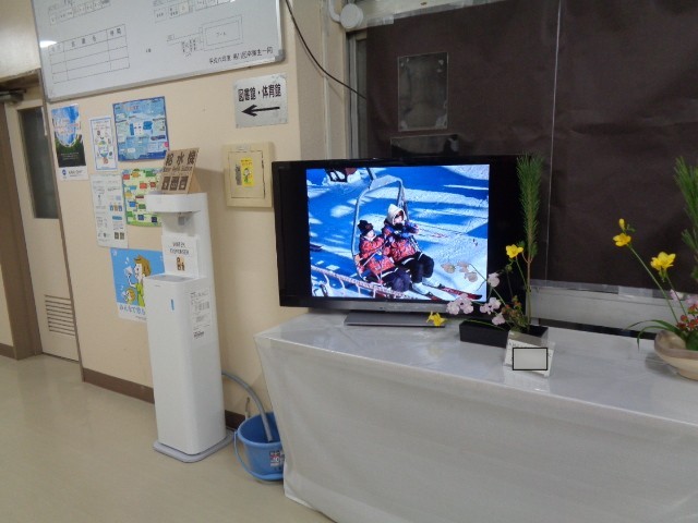 (昇降口のディスプレイには、早くも今日の写真が流れていました。)