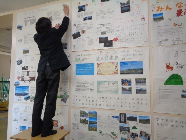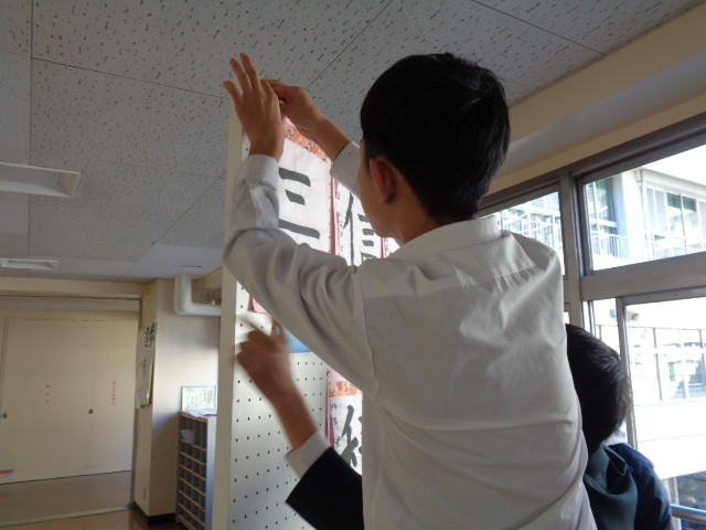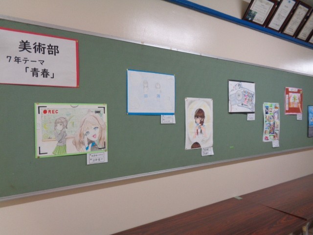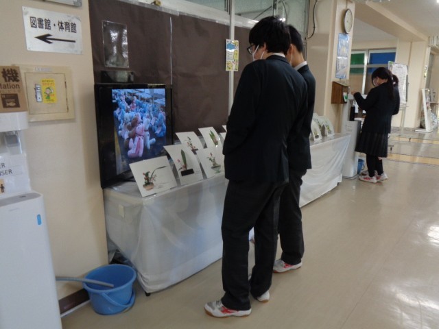 また、昼休みには、はがれかけていた展示作品を自ら補修する生徒の姿もあり、作品を大切にする気持ちが感じられました。