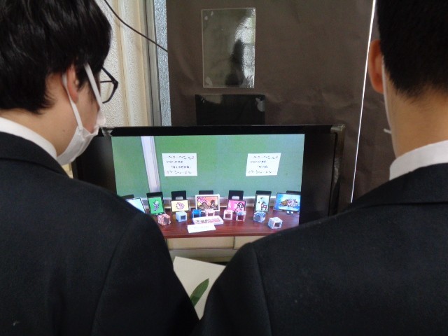 文化発表会(展示発表の部)は2日目を迎えました。休み時間や教室移動の際には、思わず足を止めて作品に見入る生徒の姿が見られます。