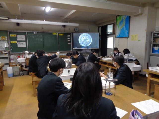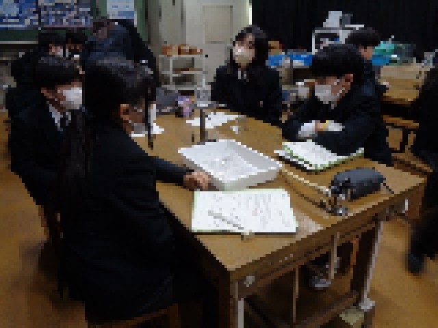 その結果、白い結晶の大きさや様子に違いが見られ、生徒たちは班で意見を出し合いながら、冷え方と岩石のつくりの関係について理解を深めていました。実験を通して、知識として学んだ内容を実感を伴って学ぶことができました。
