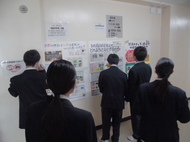 文化発表会(展示発表の部)は2日目を迎えました。休み時間や教室移動の際には、思わず足を止めて作品に見入る生徒の姿が見られます。