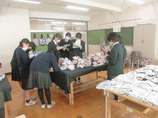 来週から始まる文化発表会(展示の部)に向け、放課後に展示準備を行いました。各学年のホールや壁面、被服室などには、授業で生徒たちが制作した作品や部活動の作品が並び、校内が華やかな雰囲気に包まれています。