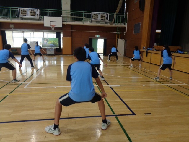 はじめに7学年主任から、卒業式に臨む心構えについての話がありました。続いて8学年主任から、式典にふさわしい礼の仕方や姿勢など、礼法についての指導があり、生徒たちは真剣な表情で耳を傾けていました。