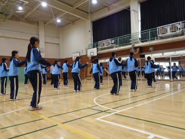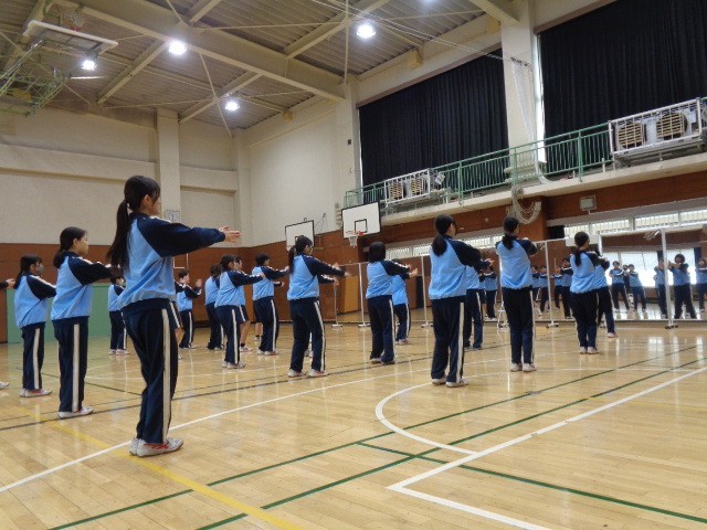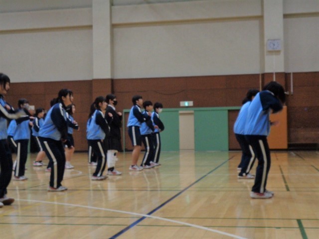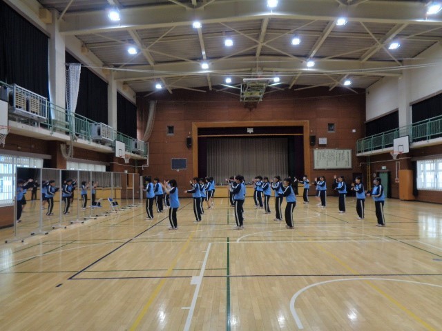 9年生を送る会(9送会)で披露するダンスの練習に取り組んでいます。私立高校の入学試験や手続きのため登校していない生徒や、インフルエンザなどの体調不良で欠席している生徒も一部いますが、体育館からは軽快な音楽が響いてきました。