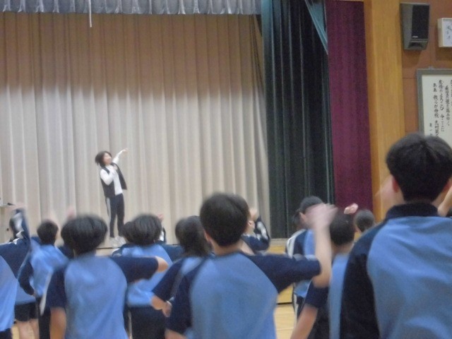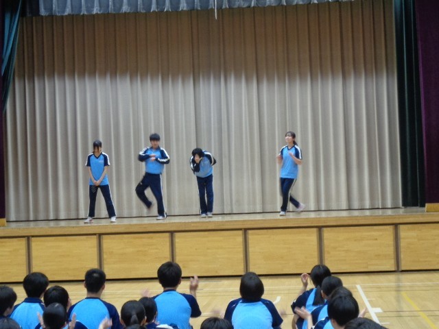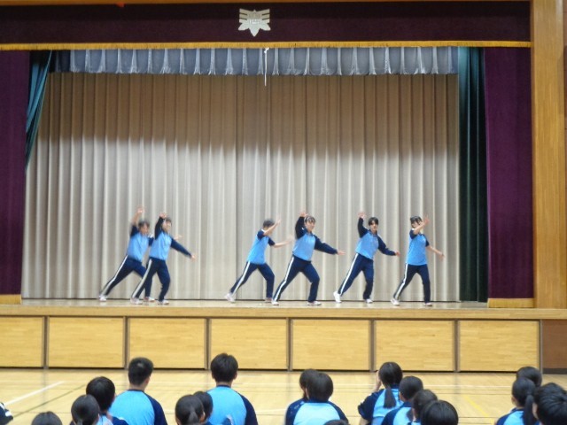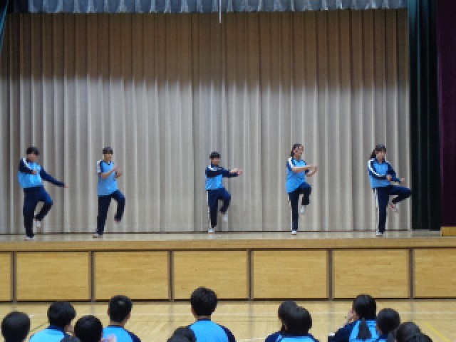 どの班も音楽に合わせて工夫された振り付けで、堂々とした発表を行いました。発表後には、講師の菅野さんから一つ一つの班に温かい講評と称賛の言葉が送られ、体育館は大きな拍手に包まれました。