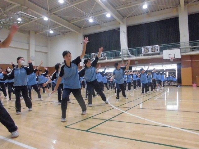 リズムに乗って体を大きく動かす場面も多く、体育館には活気ある音楽とともに、生徒たちの楽しそうな声が響いていました。かなりの運動量でしたが、踊りきった後には大きな達成感が感じられ、ダンスが好きな9年生ならではの充実した時間となりました。