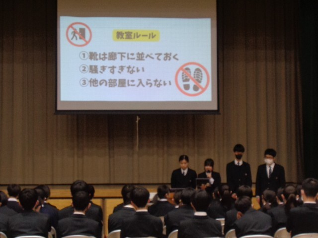 言葉での説明だけでなく、実際の「完成形」を見ることで、他の9年生にとっても分かりやすいものとなりました。学級委員たちは、学年のリーダーとして頼もしい姿を見せてくれました。