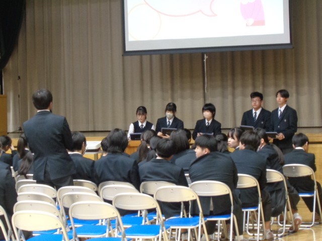 各クラスでの発表を経て選ばれたグループは、クラス発表のときよりもさらに内容を発展させ、資料の補強や発表練習を重ねてこの日を迎えました。どの発表もよく工夫されており、充実した内容となっていました。