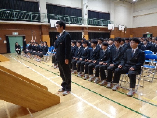 続いて、9年生の学級委員長からも、「後輩にかっこいい姿を見せる最後の行事です。たくましい姿を見せられるよう頑張ります。7・8年生の皆さんにも真剣に取り組んでほしいと思います」とメッセージが伝えられました。