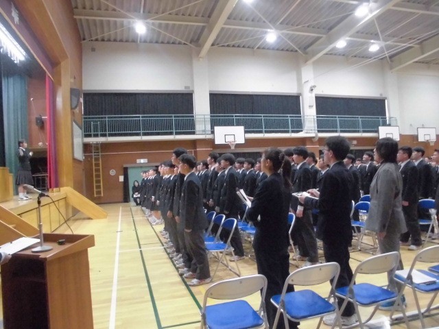 今日は、7・8・9年生の3学年がそろい、卒業式に向けた全体練習を行いました。