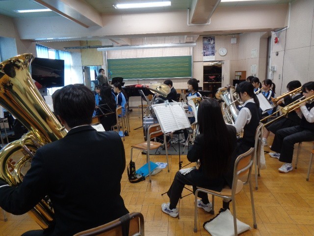3月20日、春分の日に吹奏楽部のスプリングコンサートが行われました。本校吹奏楽部員のご家族、本校生徒、部活動のOB、舟渡小学校・志村第六小学校の児童や保護者の方々、教職員など、70名を超える皆様にご来場いただきました。