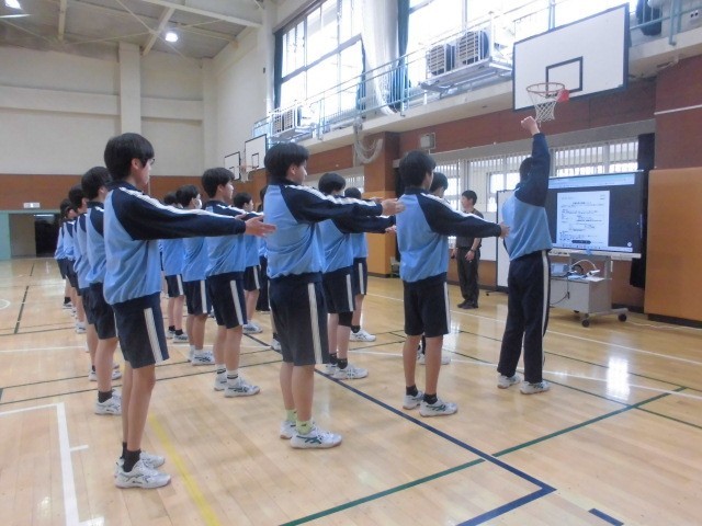 午後も雨が続いたため、サッカー部は体育館でスローイング練習などを行いました。練習後のミーティングでは、顧問から練習に取り組む際の注意点などが確認されました。